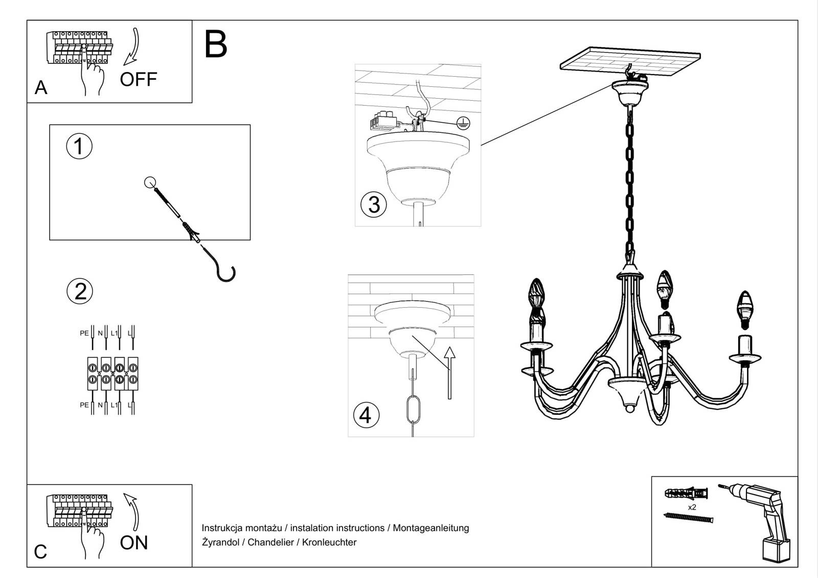 Candelabru MINERWA 5 alb + 5x bec LED E14 4000K rece 7.5W 650lm