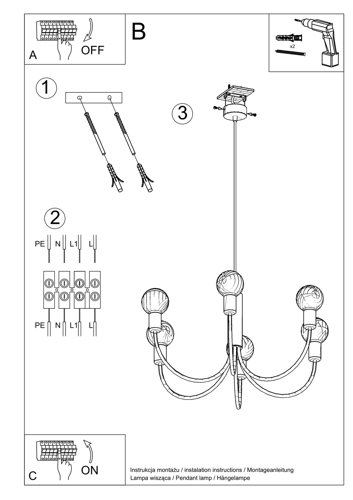 Candelabru PICCOLO 5 + 5x Bec LED E27 3000K Warm 7.5W 620lm