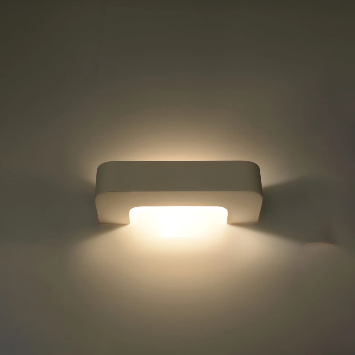 Lumina din lampă se răspândește în sus și în jos, iar ceramica albă, mată carcasa combinată cu suprafața iluminată creează o compoziție vizuală frumoasă. Lampa de perete va arăta grozav în interioarele moderne, încântând prin lejeritatea și forma sa elegantă.