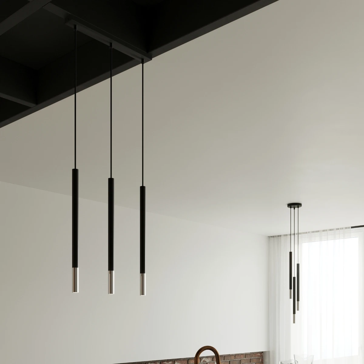 Ajustați numărul de puncte de lumină în interiorul dvs. Puteti obtine lampa cu pandantiv MOZAICA in trei variante: cu una sau trei nuante dispuse liniar sau in triunghi.