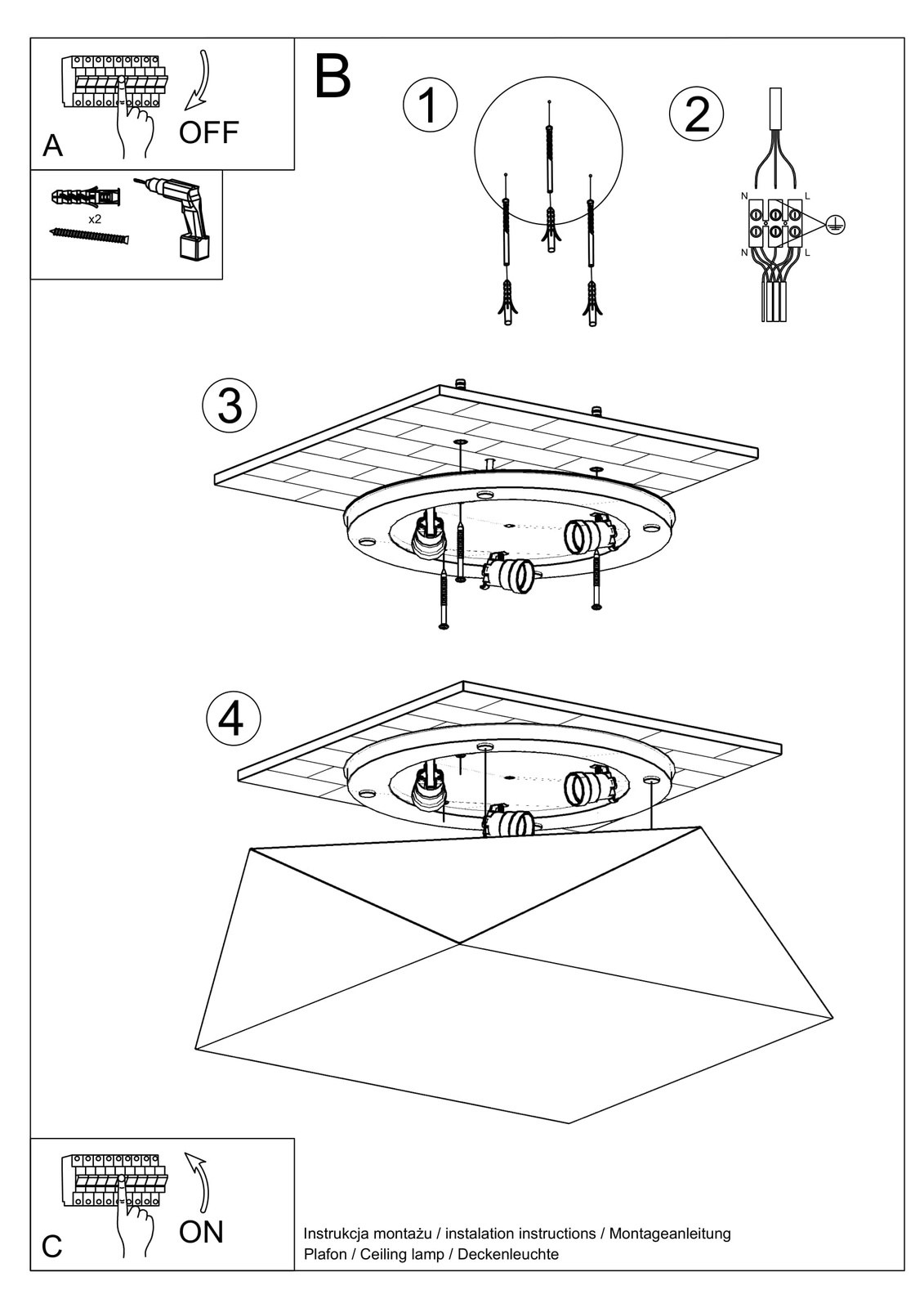 Plafonieră HEXA 45 CEKIN + 3x bec LED E27 3000K Warm 7.5W 620lm