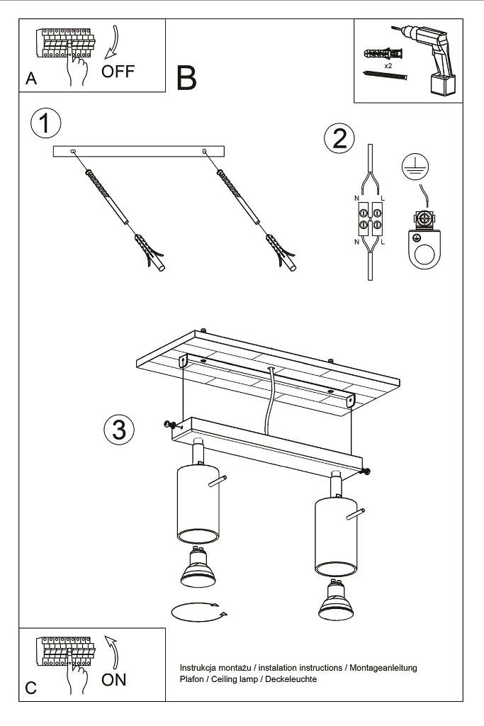 Plafonieră RING 2 negru + 2x bec LED GU-10 3000K cald 7W 620lm